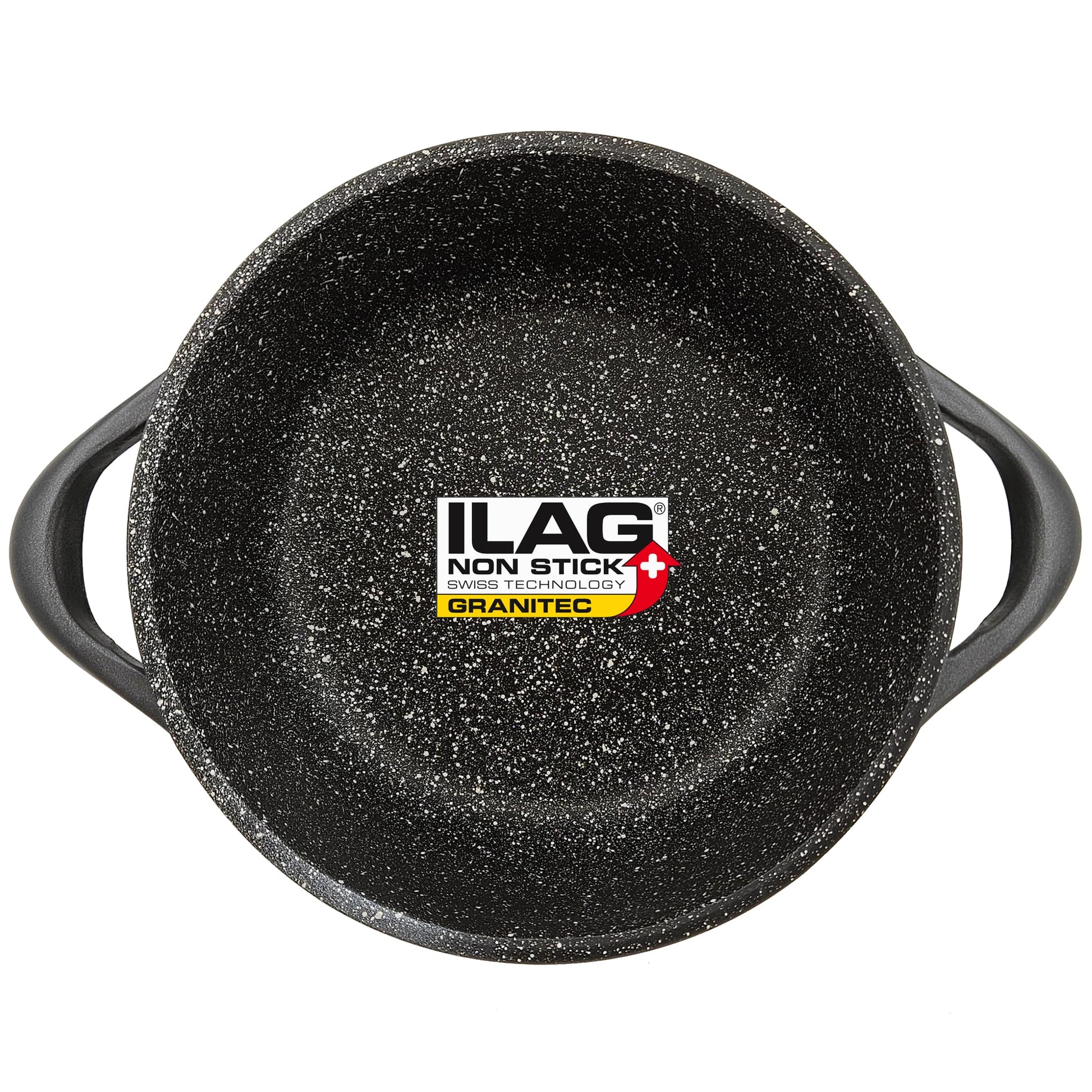 - ANTIADHERENTE ILAG GRANITEC: Set de cazuelas fabricadas con antiadherente GRANITEC CERAMIC de ILAG, marca Suiza especialista en recubrimientos antiadherentes de alta calidad. Su proceso de fabricación controlado y seguro da como resultado un antiadherente de 4 capas con refuerzo cerámico que ofrece una excelente resistencia a rayaduras y abrasiones. Ideal para uso diario e intensivo, además el efecto de granito aporta un diseño especial.
